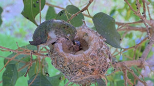 Olive feeding her chick one day old – April 17th
